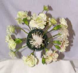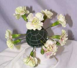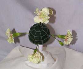 - ブルーレースフラワーの咲いている部分をカーネーションの間に入れます。(B)