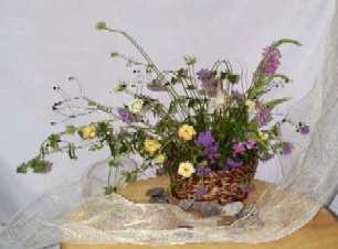 野草の様な雰囲気の花材とその伸びやかさを生かして、型にあてはまらない
